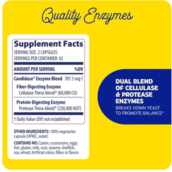 This high-potency blend of cellulase and protease enzymes breaks down yeast, supporting balance while improving gut and microbiome health.* Powered by Thera-blend™, Candidase’s enzymes work throughout the body for maximum benefit.