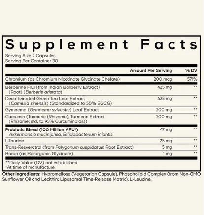 Akkermansia muciniphila, a valued probiotic, is paired with Berberine HCl, a bioactive ingredient known for its distinctive properties. Together, they offer a unique approach to your wellness regimen