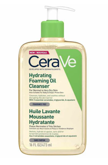 CeraVe Hydrating Foaming Oil Cleanser is formulated with three essential ceramides and squalane to lock in moisture and helps maintain the skin’s protective barrier, a feature especially beneficial to dry to very dry skin.