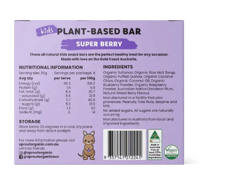 Sprout Organic Kids Plant-Based Bar - Super Berry 25g X 4