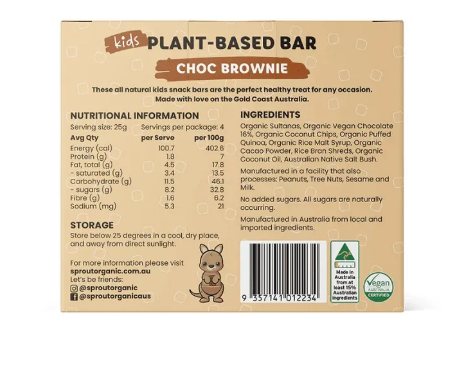 Sprout Organic Kids Plant-Based Bar - Choc Brownie 25g X 4